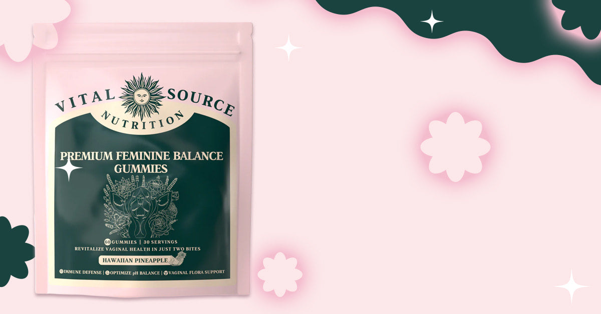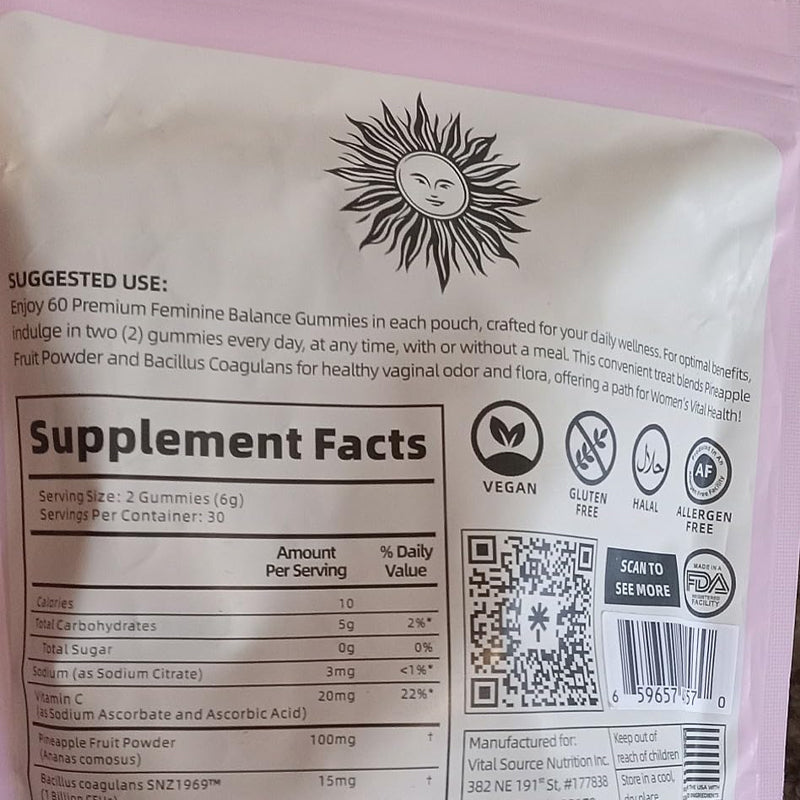 At Vital Source, we share your values. Our gummies are vegan, gluten-free, and low in calories, made with high-quality ingredients and a naturally delicious Hawaiian Pineapple and Cranberry flavor. These Feminine Balance Gummies are crafted to complement your nutritional preferences.